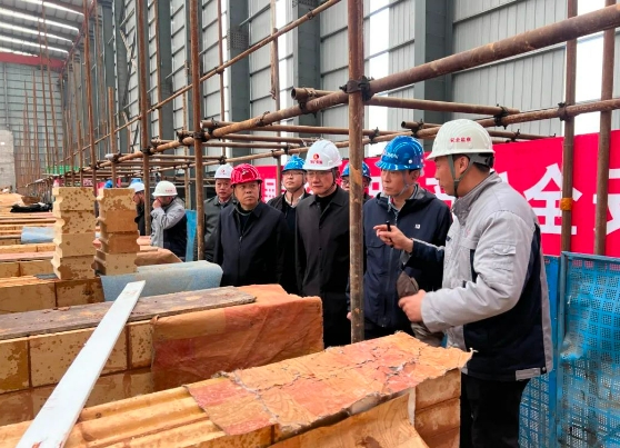 在玻璃項(xiàng)目窯爐建設(shè)現(xiàn)場(chǎng),葉榮詳細(xì)了解窯爐砌筑施工方案,詢問(wèn)煙囪施工進(jìn)度過(guò)程中遇到的困難和亟待解決的問(wèn)題。他指出,防護(hù)欄是高空作業(yè)人員的“生命線”,窯爐砌筑現(xiàn)場(chǎng)防護(hù)欄設(shè)計(jì)應(yīng)執(zhí)行“雙重保險(xiǎn)”原則,決不能有絲毫僥幸心理。