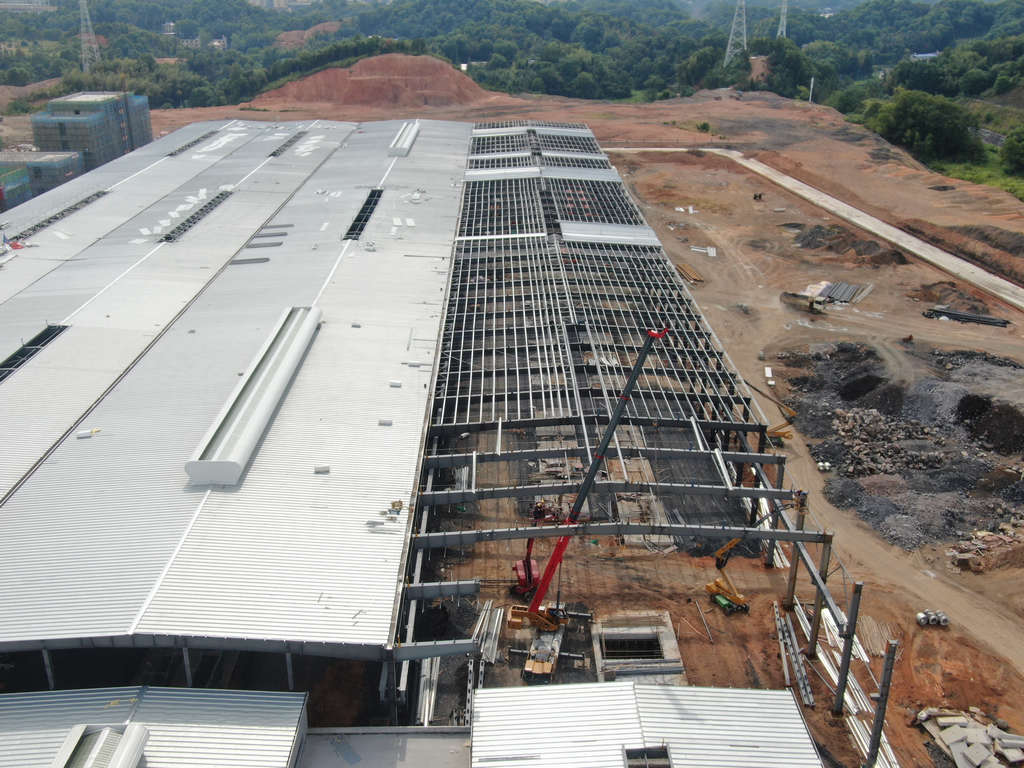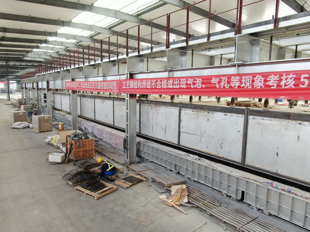 成型工段:700噸生產(chǎn)線車間鋼結(jié)構(gòu)完成98%,500噸生產(chǎn)線鋼結(jié)構(gòu)完成96%。