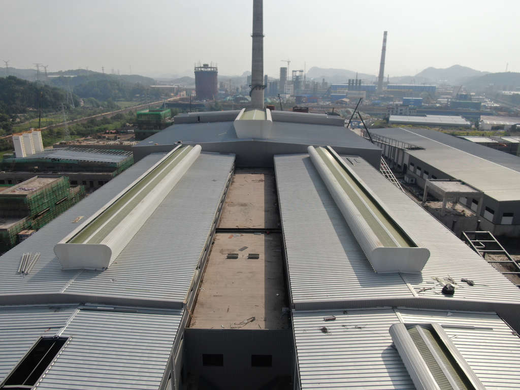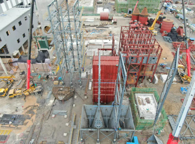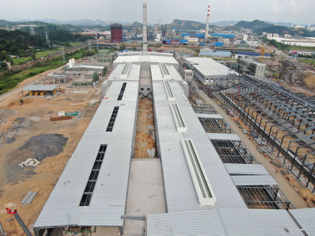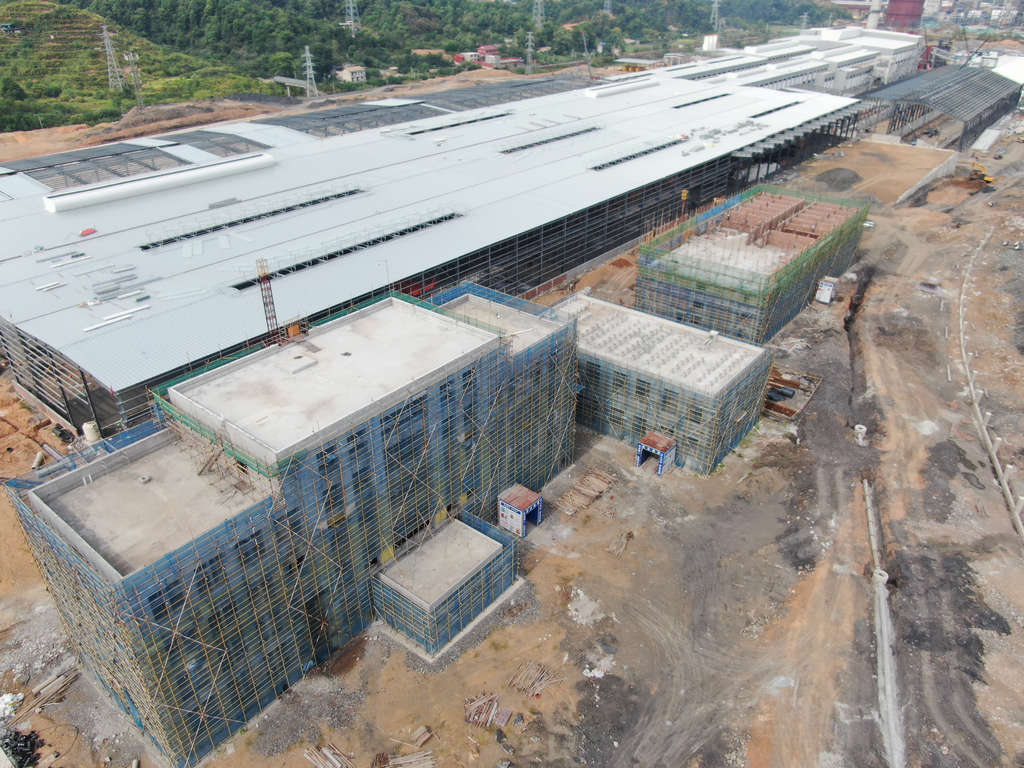熔化工段:基礎(chǔ)、主體工程完成,鋼結(jié)構(gòu)安裝完成98%(通風器已完成88%)。