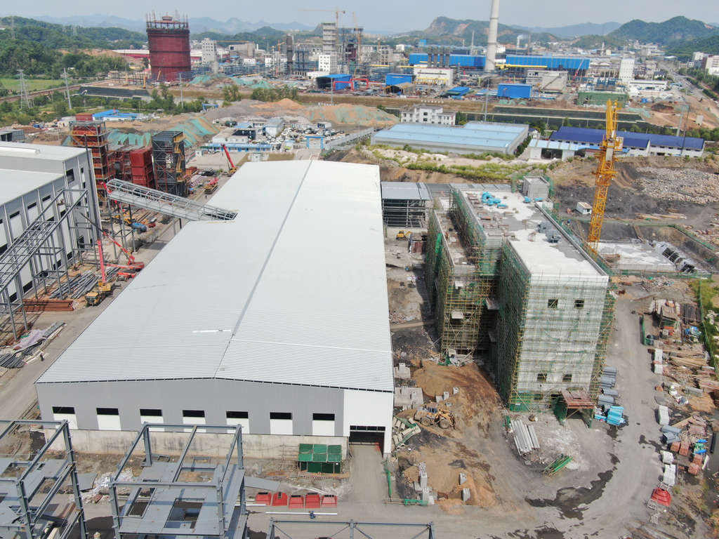 成品工段:獨立基礎(chǔ)工程已完成,成品工段鋼結(jié)構(gòu)安裝完成97%;防火涂料噴涂88%。